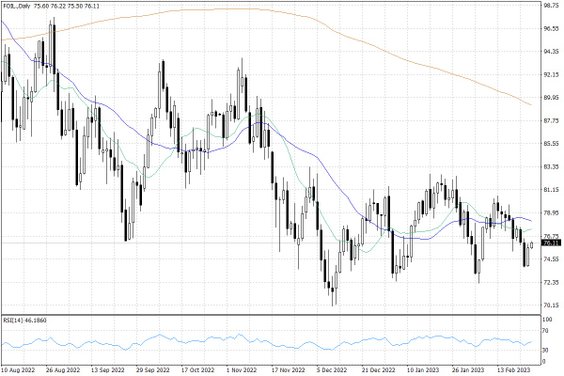 Po spadkach na początku bieżącego tygodnia, druga połowa tygodnia na rynku ropy upływa pod znakiem lepszych nastrojów i odbicia cen tego surowca w górę. Ruch ten wpisuje się w sytuację na szerokich rynkach – o ile w pierwszej połowie tygodnia mocno dawały o sobie znać napięcia geopolityczne, a kwestia wojny na Ukrainie wybijała się na pierwszy plan za sprawą wizyty Joe Bidena w Kijowie i później w Polsce – to obecnie obawy się zmniejszyły. Dziś, w rocznicę inwazji Rosji na Ukrainę, ruchy inwestorów sugerują brak wiary w to, że Rosja wykona jakiś nieoczekiwany ruch.