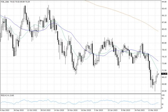 Te wiadomości mają istotne przełożenie na ceny surowców, w tym również ropy naftowej. Wczorajsza sesja przyniosła ostatecznie zwyżkę notowań ropy, a dzisiaj delikatne wzrosty są utrzymane. Nadal jednak do optymizmu na rynku ropy naftowej jest daleko, o czym świadczy chociażby niewielka dynamika odbicia cen w górę.