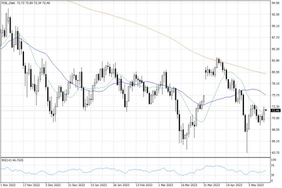 Wczorajsza fala optymizmu, która przetoczyła się przez rynki akcji, nie ominęła także rynku ropy naftowej. Cena tego surowca dynamicznie odbiła w górę podczas środowej sesji, co sprawiło, że ceny ropy zyskały szansę na zakończenie całego tygodnia na plusie. Cena ropy WTI obecnie oscyluje w rejonie 72,50-73,00 USD za baryłkę, z kolei notowania ropy Brent poruszają się w pobliżu 76,50-77,00 USD za baryłkę.