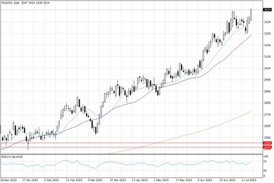 Już od niecałego roku notowania kakao poruszają się w trendzie wzrostowym. Cena tego surowca w Stanach Zjednoczonych, która jeszcze we wrześniu poprzedniego roku oscylowała w okolicach 2200 USD za tonę, w czerwcu bieżącego roku przekroczyła kolejną psychologiczną barierę, poziom 3000 USD za tonę. Natomiast w tym tygodniu cena kakao w USA znajduje się już na poziomie tuż powyżej 3400 USD za tonę. To najwyższy poziom notowań kakao od 12 lat. W przypadku cen kakao na giełdzie londyńskiej, notowania są najwyższe od 46 lat.