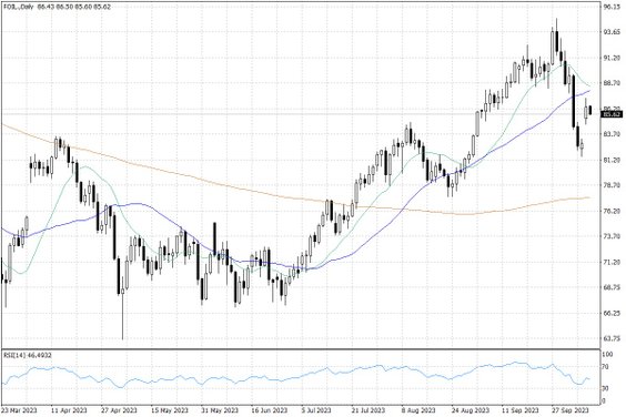 Wzrost cen ropy wyhamował – po wczorajszych zwyżkach, dziś na rynku delikatnie dominuje strona podażowa, ale ceny ropy naftowej pozostają w zakresie obserwowanym podczas wczorajszej sesji. Obecnie cena ropy WTI porusza się tuż poniżej 86 USD za baryłkę, a notowania ropy Brent oscylują w okolicach 87,50 USD za baryłkę.