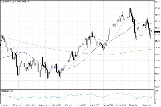 W tym tygodniu na rynku ropy naftowej utrzymuje się przewaga strony podażowej. Co prawda cena tego surowca wczoraj zwyżkowała, jednak już dzisiaj rano powraca do przecen. Notowania ropy naftowej WTI oscylują w rejonie 84-85 USD za baryłkę, z kolei cena ropy Brent porusza się w okolicach 88-89 USD za baryłkę.