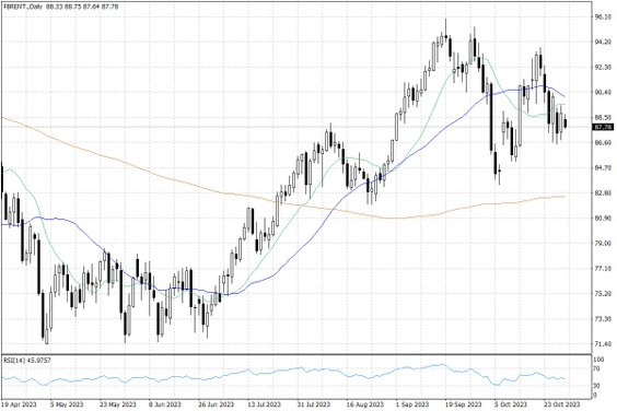 Oba gatunki ropy potaniały nawet mimo wzrostu napięć na Bliskim Wschodzie po tym, jak Izrael zdecydował się na wyniszczającą ofensywę lądową. Reakcję inwestorów było widać przez chwilę jedynie w piątek. Niemniej, mimo ogromu tragedii w tym regionie, konflikt najprawdopodobniej nie eskaluje na kraje ościenne, co z punktu widzenia inwestorów na rynku ropy naftowej oznacza mniejsze prawdopodobieństwo zaburzeń w produkcji i eksporcie ropy naftowej.