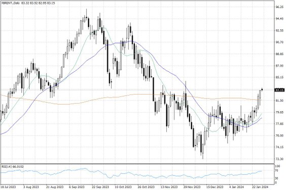 Dzisiaj rano wsparciem dla notowań ropy są przede wszystkim kwestie geopolityczne. Po pierwsze, jemeńscy rebelianci Huti, wspierani przez Iran, kontynuują ataki na statki przepływające przez Morze Czerwone. Mimo kontrofensywy stacjonujących w rejonie Bliskiego Wschodu wojsk brytyjskich i amerykańskich, które przeprowadziły ataki na cele Huti, bojówki nie ustępują i zapowiadają kolejne ataki.
