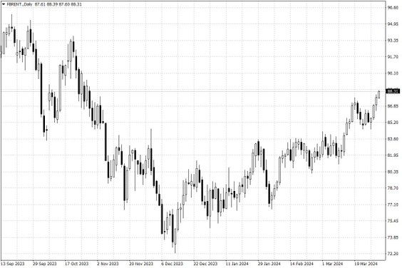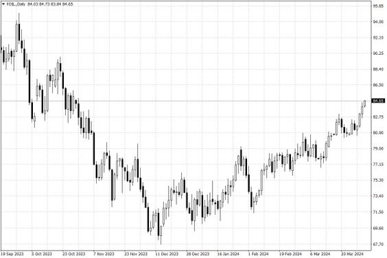 Notowania ropy naftowej rozpoczynają drugi kwartał tego roku od zwyżki. Ceny surowca gatunku WTI przekroczyły poziom 84 USD za baryłkę, podczas gdy notowania ropy Brent zwyżkowały do okolic 88 USD za baryłkę. W obu przypadkach, są to najwyższe poziomy od końcówki października 2023 r.