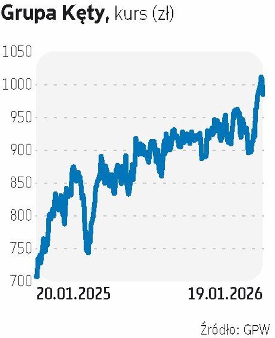 Z końcem 2025 r., po krótkiej korekcie, kurs akcji Grupy Kęty wrócił na wzrostową ścieżkę, wypracowując w tym roku już kilkunastoprocentową zwyżkę. W zeszłym tygodniu po raz pierwszy w historii przebiły okrągły poziom 1000 zł i wyznaczyły nowy szczyt przy 1018 zł. Poniedziałkowa korekta sprawiła, że znalazły się tuż poniżej tej wartości. Wycena giełdowa Grupy Kęty sięga już blisko 10 mld zł.