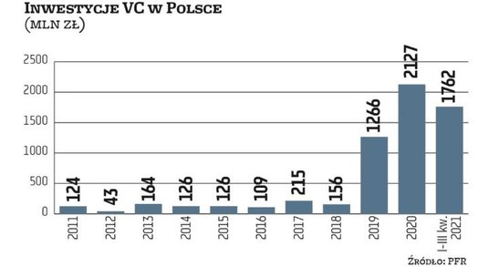 2021 r. będzie rekordowy pod względem inwestycji venture capital na polskim rynku. Polski Fundusz Rozwoju (PFR) prognozuje, że łącznie do startupów trafi około 2,5 mld zł, a to nawet o blisko jedną piątą więcej niż rok wcześniej. Jak twierdzi Paweł Borys, prezes PFR, to dużo, bo jeszcze parę lat temu ten poziom zaangażowania funduszy VC sięgał niecałych 200 mln zł. – Polski rynek dojrzewa, coraz większe podmioty pozyskują w ten sposób kapitał – zaznacza Borys.