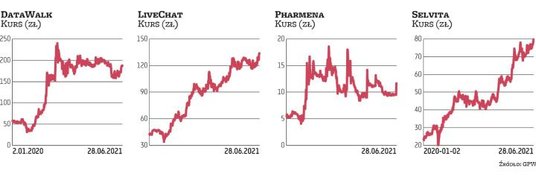 Pandemia wspiera też rozwój spółek zajmujących się tworzeniem różnego rodzaju oprogramowania i aplikacji. Solidne fundamenty i dobrą sytuację finansową (potwierdzone wynikami i dywidendą) oraz pozytywne perspektywy na 2021 r. (wynikające z portfela zleceń i obserwowanej dynamiki) mają Asseco, Comarch czy LiveChat. Ten ostatni jest na ciekawym etapie: biznes osiągnął już relatywnie dużą dojrzałość, a jednocześnie grupa może się pochwalić nadal wysoką dynamiką. W roku 2020/2021 (zakończonym 31 maca 2021 r.) skonsolidowany zysk netto wzrósł o 31,6 proc., do 100,2 mln zł, a przychody o 36,8 proc., do ponad 179 mln zł.
