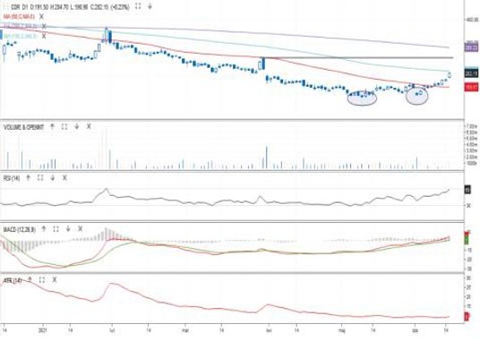 Akcje CD Projektu są o ponad połowę tańsze niż na początku grudnia 2020 r., kiedy kurs ustanowił historyczny rekord (zaczął spadać po premierze „Cyberpunka"). Analitycy niemal jednogłośnie oceniają jednak, że obecnie potencjału wzrostowego nie ma. Kurs jest o niemal 30 proc. wyższy od średniej ceny docelowej z najnowszych rekomendacji.