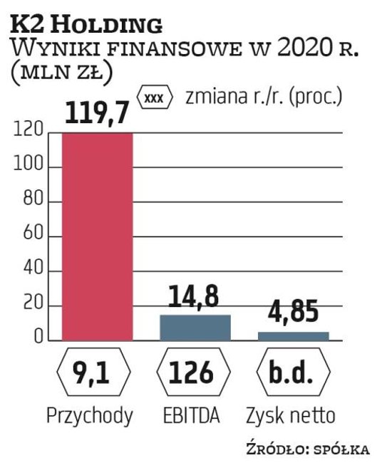 Artur Piątek, odpowiedzialny w zarządzie K2 Holding za finanse, sygnalizuje natomiast, że 2021 r. może być okresem przynajmniej stabilizacji wyników. – Mamy nadzieję, że 2020 był rokiem, w którym na stałe weszliśmy na wyższy poziom – powiedział.
