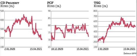 Największymi studiami w Polsce są CD Projekt i Techland. Gry AAA, czyli duże wysokobudżetowe, robi też People Can Fly. 1 kwietnia wypuściło swój flagowy tytuł „Outriders". Nadal utrzymuje się on na wysokich miejscach listy bestsellerów na Steamie, choć nie brak też narzekań na błędy techniczne, które przekładają się na mieszane opinie graczy – obecnie odsetek pozytywnych wynosi 64 proc. Studio deklaruje, że cały czas pracuje nad udoskonalaniem gry. Z kolei wydawca, Square Enix zapowiedział, że wszyscy którzy zagrali w „Outriders" pomiędzy 31 marca a 11 kwietnia otrzymają specjalny cyfrowy bonus (przedmioty w grze). Zdaniem analityków można już śmiało stwierdzić, że gra PCF odniesie komercyjny sukces. Jednak na razie nie widać tego w notowaniach. W ostatnich miesiącach kurs tkwi w konsolidacji w przedziale 70–80 zł. W czwartek po południu spadał o ponad 3 proc. do 71,4 zł. Jest najniżej od końca grudnia. Wycena PCF sięga obecnie 2,1 mld zł.
