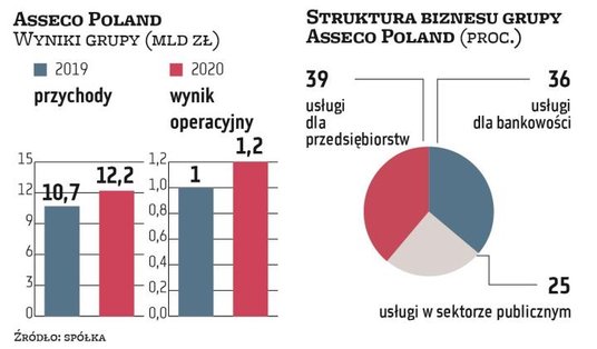 W tym roku rzeszowska spółka zamierza nadal rozwijać się organicznie, planuje też przejęcia. W 2020 r. do jej grupy dołączyło 15 spółek, m.in. na rynku izraelskim i amerykańskim. Asseco nie ujawnia, czy w najbliższych miesiącach można spodziewać się zakupów również w Polsce. Aktywów na sprzedaż w sektorze IT nie brakuje – również wśród spółek giełdowych, niedawno część z nich ogłosiła przegląd opcji strategicznych. Na temat konkretnych firm Asseco wypowiadać się nie chce. Szef informatycznej grupy zwraca natomiast uwagę, że niejednokrotnie przeszkodą są nierealistyczne wyceny technologicznych spółek. – Interesują nas firmy podobne do Asseco: z własnymi produktami, ze stabilną sytuacją finansową, działające w podobnych sektorach – dodaje Góral.