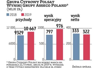 Przedstawiciele Cyfrowego Polsatu nie zdradzili nam, jak idzie im ta część biznesu w tym roku, ani też, czy inwestycja w Asseco Poland to ostatnia tego typu inwestycja grupy. Olga Zomer, rzeczniczka Cyfrowego Polsatu, zapewniła nas, że grupa nie ma aspiracji, by wchodzić w IT rozumiane jako budowa i integracja systemów, tak jak to robi Asseco.