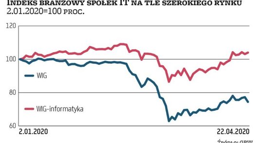 Prawie 2 proc. zyskiwał w środę wskaźnik WIG-informatyka. W górę ciągnęło go Asseco Poland, które najwięcej w tym indeksie waży. Jest on o 4 proc. wyżej niż na początku roku i wygrywa z szerokim rynkiem o 30 pkt proc. Inwestorzy wierzą, że branża IT nie ucierpi na trwającej pandemii, a nawet że będzie jej beneficjentem.