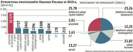 Brak precyzyjnych informacji z ich strony to jeden z problemów analitycznych. Nie pomaga fakt, że sektor telekomunikacyjny przeszedł wiele zmian. Dla przykładu wynik Polkomtelu, operatora sieci Plus, którego EBITDA w 2018 r. wyniosła około 1,66 mld zł (w 2010 r. 2,8 mld zł), uwzględnia szereg zmian, jakim podlegał telekomunikacyjny biznes Grupy Cyfrowy Polsat, w tym ostatnio wydzielenie ze spółki infrastruktury i przeniesienie jej do nowego podmiotu – Polkomtelu Infrastruktura (Polkomtel ma w niej mniejszościowy udział, a 75 proc. kontroluje Cyfrowy Polsat). Firma ta w ub.r. odnotowała 700 mln zł przychodów i ponad 300 mln zł EBITDA – mówią dane z KRS. Z kolei Orange to od kilku lat połączone TPSA z Centertelem.