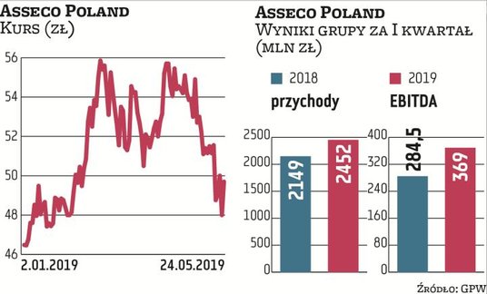 Indeks branżowy WIG-informatyka rósł w piątek o prawie 3 proc. W górę ciągnęło go Asseco Poland, które w tym wskaźniku waży najwięcej. Piątkową sesję akcje Asseco rozpoczęły od lekkich zwyżek, ale potem wzrost przybierał na sile. Po południu kurs rósł o ponad 5 proc. Była to reakcja na publikację raportu za I kwartał 2019 r. Przychody i zyski były wyższe od prognoz analityków.