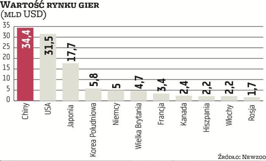 Polska z rynkiem wartym 541 mln USD zajmuje 23. miejsce w globalnym rankingu – wynika z najnowszych, tegorocznych danych firmy Newzoo. Zmiany w stosunku do szacunków sprzed kilku miesięcy są symboliczne, a na czołowych miejscach nie ma ich w ogóle. Prym nadal wiodą Chiny z rynkiem wartym ponad 34 mld USD. Nasilenie cenzury przełożyło się na niższe niż początkowo zakładano prognozy dla tego rynku, ale nadal – szczególnie w segmencie gier mobilnych – nie ma on sobie równych.