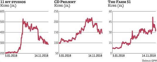 W środę rano notowania większości producentów gier świeciły na czerwono, jednak z każdą godziną sytuacja się poprawiała. Po południu 11 bit studios w oczekiwaniu na raport, który miał się pojawić po sesji, drożało o 4 proc. Na plus wyszedł też CD Projekt, który nie zachwycił wynikami za III kwartał i sesję rozpoczął od wyraźnej przeceny.