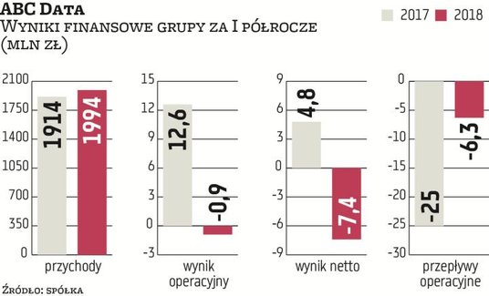 Poniedziałek był dla akcjonariuszy ABC Daty trudnym dniem. Po zaskakująco słabych wynikach za II kwartał inwestorzy rzucili się do wyprzedaży akcji. Po południu taniały o niemal jedną piątą. Uwagę zwracał też wysoki wolumen.