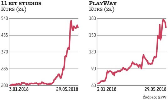 Po południu kurs 11 bit studios spadał o prawie 4 proc., a PlayWaya – o niemal 9 proc. Jest prawdopodobne, że część inwestorów wykorzystała dzień premier, by wyjść z inwestycji i zrealizować zyski. W ostatnich tygodniach to właśnie te dwie spółki z branży drożały najmocniej.