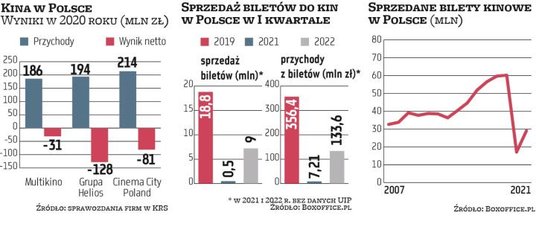 2020 rok przyniósł im zapaść i pokaźne straty. 2021 pierwsze sygnały odbudowy. 2022 miał być rokiem dalszego ożywienia, ale traf chciał inaczej. Na razie kina w Polsce notują frekwencję wyższą niż poprzednich dwóch latach, ale nadal o połowę niższą niż w rekordowym 2019 roku. To, jaka będzie ich przyszłość, zależy od decyzji studiów produkujących blockbustery.