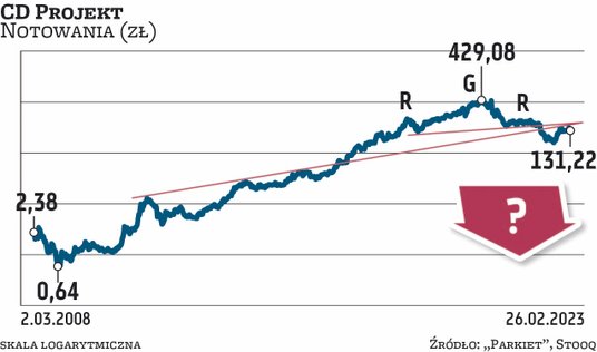 Po blisko dwóch latach głębokiej wyprzedaży akcje CD Projektu zanotowały najsilniejsze jak do tej pory odbicie, po czym w listopadzie weszły w trwającą do dzisiaj stabilizację. W środę za jeden papier płacono nieco ponad 132 zł, o 22 proc. mniej niż przed rokiem, co jednak wciąż oznacza pewną słabość na tle 9-proc. straty indeksu WIG.