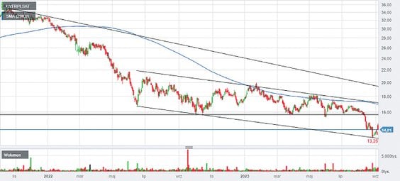 Akcje Cyfrowego Polsatu fatalnie zachowały się w 2022 r., kiedy przecena sięgnęła 46 proc. Ten rok również jak dotąd nie układa się po myśli inwestorów, bo spadek wynosi około 20 proc. Ostatnie dni dają podstawy, by wierzyć, że przecena przedsiębiorstwa zbliża się do kresu. Szczególnie mocno Cyfrowy zachował się w środę, w dniu decyzji RPP o obniżeniu stóp procentowych o 0,75 pkt proc. Sesja zakończyła się wówczas ponad 8-proc. umocnieniem, a w trakcie dnia kurs sięgał nawet 15 zł. W czwartek zabrakło sił do kontynuacji tego ruchu – po południu akcje zniżkowały o 3,4 proc., do 14 zł. Według Michała Pietrzycy z DM BOŚ po sesji w środku tygodnia na walorach Cyfrowego Polsatu rozpoczął się układ korekty wzrostowej według DMI/ADX pomimo wyraźnie zniżkowych nastawień według długofalowego tzw. price action. W jego ocenie środowa zwyżka przyniosła dopełnienie lokalnej formacji podwójnego dna, potwierdzając ważne wsparcie 13,18 zł z III kwartału 2011 r. i I półrocza 2012 r. „To bardzo ważna, istotna bariera, którą byki perfekcyjnie wychwyciły, wytrącając impet sprzedażowy na DMI/ADX. Aktualnie mamy według tego wskaźnika projekcję dynamicznej korekty wzrostowej, która będzie mogła eskalować w przypadku zniwelowania rangi oporu 14,81 zł” – przewiduje Pietrzyca. Jak zauważa, długofalowa średnia z 200 sesji (SMA przy 16,96 zł) nieznacznie opada, podtrzymując rynek niedźwiedzia, i o tym przede wszystkim należy pamiętać. „Dopiero wyjście kursu ponad opory 14,81–15,91 zł wykreuje początek stanu rynku byka” – twierdzi Pietrzyca. Z punktu widzenia wskaźnikowego analizy technicznej walory spółki są w układzie korekcyjnym wzrostowym, ale byki powinny wykazać się determinacją przy bronieniu wspomnianej wyżej strefy popytowej, aby wypunktować obóz podaży w statystyczny – ilościowy sposób, by potwierdzić zdobytą przewagę na wykresie dziennym akcji Cyfrowego Polsatu.
