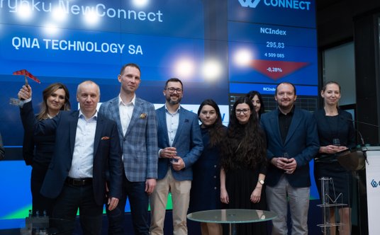 Na rynku NewConnect w czwartek pojawiła się innowacyjna spółka QNA Technology, pionier w syntezie niebieskich kropek kwantowych, półprzewodnika wykorzystywanego do rozwoju nowych generacji wyświetlaczy. Na otwarciu notowań akcje skoczyły w górę o 24 proc., do 48 zł. Po godzinie 16 kosztowały już 65 zł, co oznaczało wzrost niemal o 67 proc.