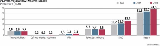 Na razie przed branżą 2024 r. – Szacujemy, że rynek płatnej telewizji i serwisów streamingowych w Polsce w 2023 r. urósł pod względem liczby subskrypcji o około 4 proc., do 21,1 mln – podaje Gunnarsson. To oznacza wzrost o około 700 tys. w porównaniu z 2022 r. W przyszłym roku subskrypcji ma przybyć około 800 tys. – i też głównie za sprawą serwisów streamingowych.