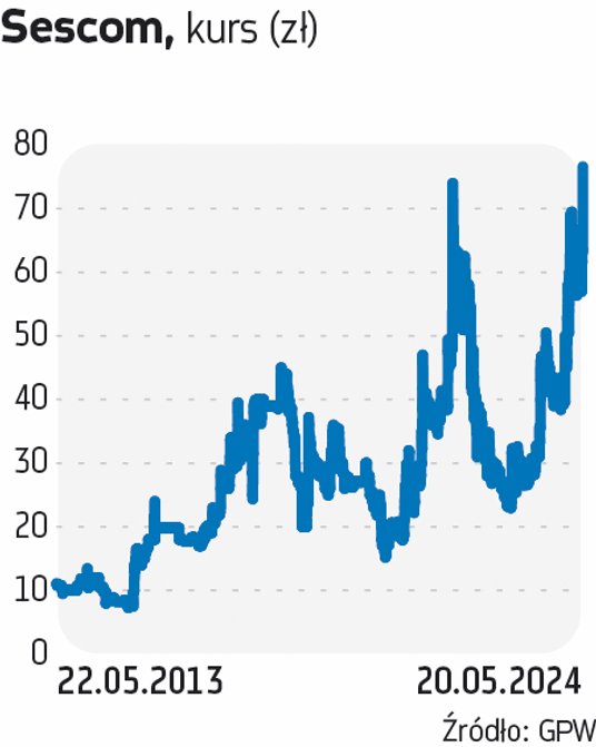 O ponad 20 proc., do 76,6 zł, drożały w poniedziałek akcje Sescomu. Był to największy wzrost na GPW. W ten sposób rynek zareagował na informację o roszadach właścicielskich.