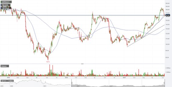 Obecnie notowania balansują jednak wokół linii średniej 50-sesyjnej, zatem byki muszą działać. W razie przełamania wsparcia w okolicach 164 zł popyt może bronić na poziomie 20 zł niżej. W tym miejscu rysuje się linia wsparcia poprowadzona m.in. przez szczyty z maja tego roku i lutego 2023 r. Dodatkowym oparciem dla kupujących będzie też bliskość średniej 200-sesyjnej. Od początku roku walory CD Projektu umocniły się o 44 proc.