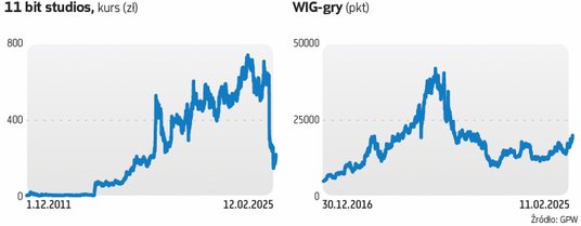 W ostatnich miesiącach atmosfera wokół 11 bit studios jest bardzo gorąca. W 2024 r. wycena akcji stopniała o ponad połowę. Była to reakcja na gorszą od oczekiwań premierę drugiej części „Frostpunka” oraz nieoczekiwaną decyzję o zamknięciu „Projektu 8”. W połowie grudnia kurs studia zaliczył wieloletnie minimum, spadając poniżej 149 zł. Od tego czasu wzrósł o niemal połowę. Obecna wycena akcji implikuje ponad 0,5 mld zł kapitalizacji.