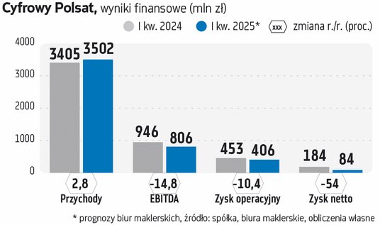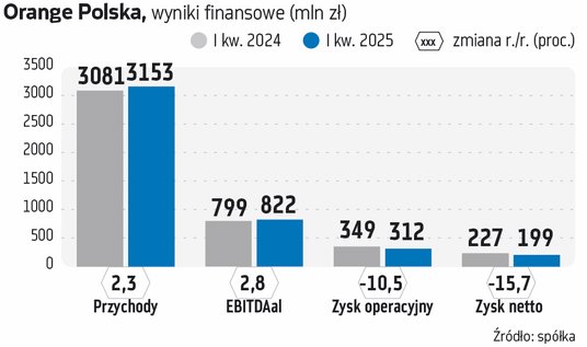 Pierwszy kwartał 2025 roku minął największym telekomom w Polsce bez fajerwerków – wynika z opublikowanych wyników Orange Polska oraz prognoz przygotowanych przez biura maklerskie dla Cyfrowego Polsatu. Podwyżki cen wprowadzone wcześniej, a w przypadku Cyfrowego Polsatu także coraz wyższe przychody ze sprzedaży zielonej energii sprawiły, że operatorzy mogli wykazać wzrost przychodów. Ponieważ rok temu ich zyski powiększone były przez jednorazowe zdarzenia o dużej wartości, 2025 rok zaczęły rezultatami słabszymi niż przed rokiem.