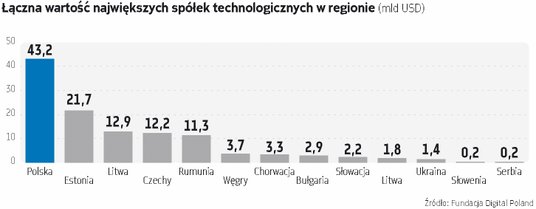O niemal 10 proc., do 117 mld USD urosła w 2024 r. łączna kapitalizacja największych spółek technologicznych w Europie Środkowo-Wschodniej – podaje Fundacja Digital Poland. Uwagę zwraca rosnące znaczenie spółek średniej wielkości. Kapitalizacja „smoków”, czyli firm z przedziału od 250 mln do 1 mld USD, w ciągu czterech lat zwiększyła się ponaddwukrotnie. W tym gronie są też spółki notowane na GPW jak Grupa Pracuj, Vercom, WP, cyber_Folks, Text czy Shoper. Deklarują, że nie zwolnią tempa.