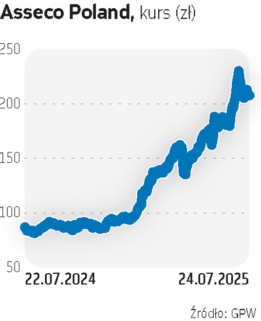 Na początku 2025 r. akcje Asseco Poland wyceniano na niespełna 100 zł, a teraz kosztują ponad 200 zł. Zdaniem ekspertów perspektywy wynikowe dla Asseco zostały już zdyskontowane.