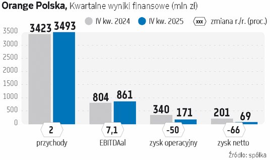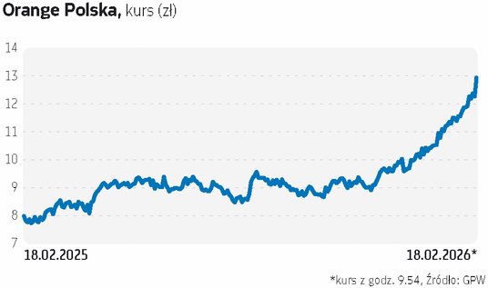 Nawet 13,04 zł, o ponad 6 proc. więcej niż w we wtorek, kosztowała w środę akcja Orange Polska. Tak inwestorzy zareagowali na pokazane rano przez spółkę wstępne wyniki za czwarty kwartał i cały 2025 r. oraz zaktualizowane cele na rok 2026 i cele średnioterminowe.