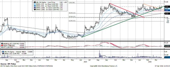 – Średnia EMA21 na trwałe przyjęła rolę wsparcia dynamicznego i obecnie wywiera rosnącą presję na kontynuację ruchu wzrostowego. Warto podkreślić, że struktura ostatnich świec uległa poprawie – widoczna jest dominacja białych korpusów, a ewentualne górne cienie są relatywnie szybko negowane. W połączeniu z sygnałem kupna na MACD wskazuje to na przejmowanie inicjatywy przez stronę popytową. Kluczowym poziomem pozostaje bariera 2,88 zł – jej trwałe wybicie otworzyłoby przestrzeń do rozpoczęcia nowej fali wzrostowej, której potencjalny zasięg (przy założeniu analogii do fali grudniowo-styczniowej) może sięgnąć okolic 3,68 zł – podkreśla analityk BM Pekao.