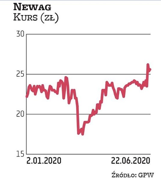 Na ostatnich kilku sesjach akcje Newagu osiągały najwyższe ceny od chwili debiutu na warszawskiej giełdzie, czyli od końca 2013 r. W ostatni piątek inwestorzy byli chwilami skłonni płacić za walory producenta pojazdów szynowych nawet około 27 zł. Z kolei w poniedziałek na otwarciu sesji ich kurs wynosił 25,6 zł. Dla porównania rok temu cena papierów oscylowała w pobliżu 18 zł, a dwa lata temu wynosiła ok. 17 zł.