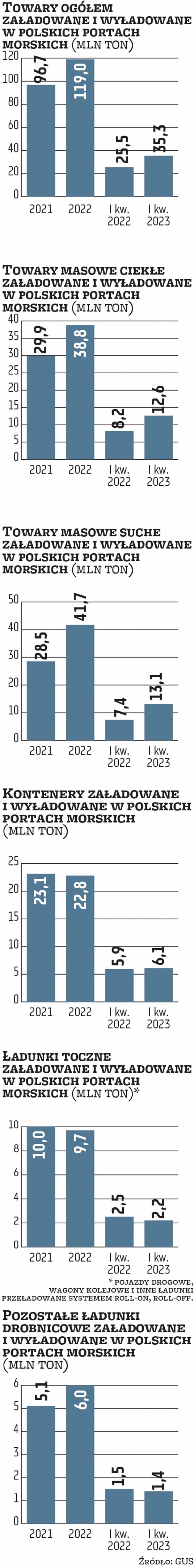 Ubiegły rok i pierwsze miesiące tego roku dobitnie pokazały, jak bardzo ważne dla naszego kraju są porty morskie. Zbrojna napaść Rosji na Ukrainę i związane z tym perturbacje m.in. w transporcie, spedycji i logistyce wszelkiego rodzaju dóbr byłyby dużo większe niż faktycznie odnotowane, gdyby nie sprawnie działająca infrastruktura w Gdańsku, Gdyni, Szczecinie i Świnoujściu. O rosnącym znaczeniu polskich portów morskich świadczą ostatnie dane GUS, które wskazują na 23,1-proc. wzrost ogółem załadowanych i wyładowanych w nich towarów, w całym 2022 r. względem 2021 r. Jeszcze wyższą zwyżkę, bo 38,8-proc., widać przy porównaniu I kwartału tego roku z analogicznym okresem ubiegłego.