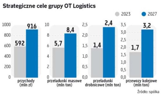 Do podstawowych celów, jakie chce realizować firma, zalicza w perspektywie do 2027 r. wzrost skonsolidowanych przychodów do 916 mln zł, z 592 mln zł zanotowanych w ubiegłym roku. Planowane jest również osiągnięcie rentowności EBITDA na poziomie 28 proc. (w 2023 r. było to 32 proc.). – Realizację tych celów mają zapewnić zwiększone przeładunki towarów masowych, drobnicowych i ro-ro oraz wyższe wolumeny ładunków przewożonych koleją – przekonuje Jedynak.