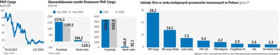 Giełdowi inwestorzy na informacje o złożeniu przez PKP Cargo wniosku o otwarcie postępowania sanacyjnego zareagowali, zgłaszając zwiększoną liczbę zleceń sprzedaży posiadanych akcji. W rezultacie na otwarciu sesji handlowano nimi po 15,86 zł, co oznaczało spadek kursu o 4,2 proc. W kolejnych godzinach skala przecen była jednak coraz większa i na mniej więcej dwie godziny przed zamknięciem notowań zniżki przekraczały nawet 7 proc. Mimo to walory spółki nadal były wyceniane wyżej niż średni tegoroczny ich kurs. Obecne notowania zdecydowanie gorzej wyglądają w stosunku do tych sprzed kilku lat. Trzy lata temu kurs papierów spółki przekraczał 20 zł, sześć lat temu wynosił ponad 43 zł, a dziewięć lat temu sięgał 85 zł. Drastyczny spadek notowań to konsekwencja systematycznie pogarszającej się kondycji finansowej grupy. Z ostatnich danych wynika, że w I kwartale poniosła ona 118,1 mln zł straty netto wobec 104,2 mln zł na plusie zanotowanych rok wcześniej. Była to przede wszystkim konsekwencja spadku popytu na świadczone usługi. W tym czasie przetransportowano zaledwie 17,9 mln ton ładunków, co oznaczało zniżkę o 23,3 proc. Szczególnie słabo było w dwóch kluczowych biznesach obejmujących przewozy paliw stałych i materiałów budowlanych. Zniżki objęły też transport metali i rud oraz drewno i płody rolne.