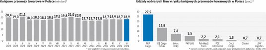 Skutki niskiego popytu odczuwa m.in. największy kolejowy przewoźnik towarów w Polsce. – PKP Cargo w restrukturyzacji jest w trudnej sytuacji ze względu na błędy w zarządzaniu popełnione w ciągu poprzednich ośmiu lat. Spółka straciła udziały rynkowe (udział w rynku mierzony pracą przewozową, czyli liczbą przejechanych kilometrów, spadł z niemal 60 proc. w 2013 r. do mniej niż 30 proc. w I kwartale 2024 r.; udział w rynku liczony masą towarową spadł z 49 proc. w 2013 r. do 30 proc. w I kwartale 2024 r.), gdyż w przeszłości nie dbano o zabezpieczenie odpowiedniego portfela zamówień i dopiero musimy odbudowywać nasze relacje z klientami i zdobywać nowe kontrakty – twierdzi Marcin Wojewódka, p.o. prezes PKP Cargo. Dodaje, że w ostatnim czasie spółka wygrała dwa duże kontrakty na przewozy dla kopalni Bogdanka oraz dla ArcelorMittalu. To jednak jeszcze nie oznacza odwrócenia negatywnego trendu. O wzrost przewozów będzie trudno, gdyż konkurencja jest coraz ostrzejsza. PKP Cargo zauważa, że branża jest w pełni zliberalizowana. Świadczy o tym ponad 100 przyznanych licencji na kolejowe przewozy towarowe w Polsce, z czego w ubiegłym roku aktywnie działało na rynku ponad 70 podmiotów. Co więcej, na rozpatrzenie czekają następne wnioski.