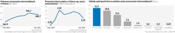 Niedawno Urząd Transportu Kolejowego podał, że w I kwartale tego roku udział transportu intermodalnego (jest realizowany przy wykorzystaniu co najmniej dwóch środków transportu) w krajowych przewozach koleją osiągnął rekordowe 16,6 proc. wykonanej pracy przewozowej. Na historycznie najwyższym poziomie był też jego udział pod względem masy. W tym przypadku wyniósł 12,7 proc.