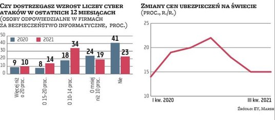 Z raportu Marsh wynika ponadto, że najwyraźniejszym trendem związanym z pandemią jest duży wysyp szkód cyber, a zwłaszcza ataków typu ransomware. Cyber to przy tym najszybciej rosnąca kategoria szkód z ubezpieczeń linii finansowych. Pierwsze roszczenia Marsh odnotował w 2016 r., a w 2020 r. było ich już ponad 100. Co ciekawe, ubezpieczyciele D&O także obawiają się szkód z ryzyk cybernetycznych, a konkretnie roszczeń udziałowców/akcjonariuszy o niewłaściwe zarządzanie spółką, które doprowadziło do strat firmy na skutek cyberincydentów oraz naruszeń prywatności.