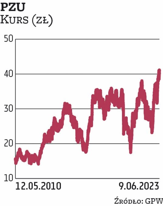 Kurs akcji największego polskiego ubezpieczyciela na warszawskiej Giełdzie Papierów Wartościowych bije historyczne rekordy. Kiedy na początku maja spółka zapowiedziała, że podczas zwyczajnego walnego zgromadzenia zaproponuje akcjonariuszom wypłatę dywidendy w wysokości 2,40 zł na akcję i przeznaczy na nią 2,07 mld zł, kurs PZU sięgnął 39 zł. W zeszłym tygodniu walne zgromadzenie przyjęło propozycję władz spółki. Jej kurs na GPW przebił poziom 41 zł i od tego momentu waha się w okolicach tej wartości. Jest rekordowy w historii notowań PZU na GPW. Spółka zadebiutowała na warszawskim parkiecie w 2010 r. Czy wzrost notowań to jedynie efekty wypłaty dywidendy?