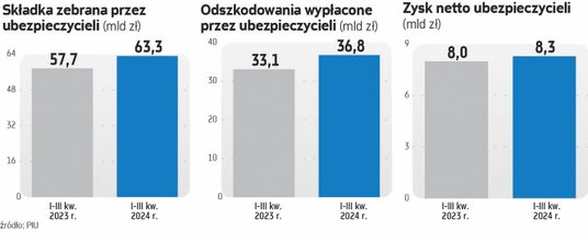 Polska Izba Ubezpieczeń podsumowała wyniki ubezpieczycieli za trzy pierwsze kwartały 2024 r. Okazuje się, że na ubezpieczenia wydaliśmy w tym czasie 63,3 mld zł, czyli o 9,6 proc. więcej niż w porównywalnym okresie 2023 r. Ubezpieczyciele wypłacili nam w tym czasie 36,8 mld zł z tytułu odszkodowań i świadczeń. To o ponad 11 proc. więcej niż rok wcześniej.