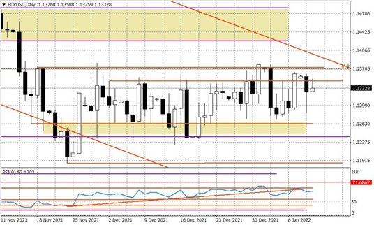 Co w krótkim terminie? Nawet, jeżeli Powell zostanie rzeczywiście zinterpretowany dzisiaj mało "jastrzębio", to szanse na wyraźne wybicie przez EURUSD rejonu oporu przy 1,1370 nie są szczególnie duże. Jutro mamy publikację inflacji CPI za grudzień i dolar może się na to nastawiać, co oznaczałoby bardziej powrót w okolice 1,13.