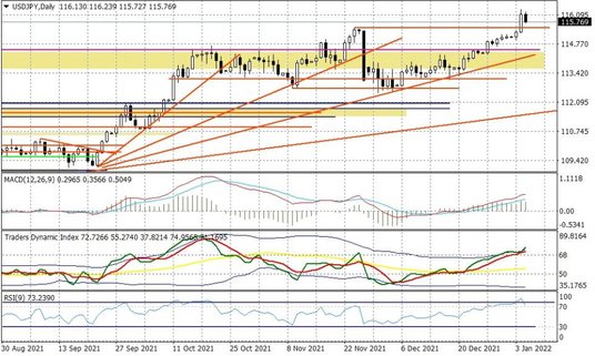 Wczorajszy wzrost pary USDJPY był imponujący. Nowe tegoroczne maksimum zostało ustanowione przy 116,33 - wyraźnie ponad barierą 116,00. Ta jednak nie zdołała utrzymać się długo - dzisiejsze zejście poniżej 116,00 powoduje, że otwarte staje się pytanie o utrzymanie się ponad listopadowym szczytem przy 115,50 w kolejnych dniach.