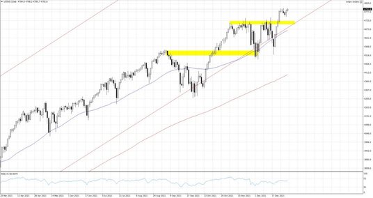 Wzrosty napędzały spółki technologiczne, bowiem Nasdaq zyskał przeszło 1%. Główne indeksy zaczęły zatem 2022 rok z przytupem, a inwestorzy bagatelizują ryzyka związane z rozprzestrzenianiem się Omikrona. Nie powinno to prowadzić to do drastycznego wyhamowania aktywności gospodarczej. W USA zdiagnozowano wczoraj po raz pierwszy przeszło milion nowych przypadków, a zatem blisko 3-krotnie więcej niż podczas poprzednich szczytów fal. Opublikowane natomiast dane PMI z sektora przemysłowego za grudzień potwierdzają, że aktywność gospodarcza utrzymuje się na wysokim poziomie. Dziś opublikowany zostanie raport ISM dla sektora przemysłowego.