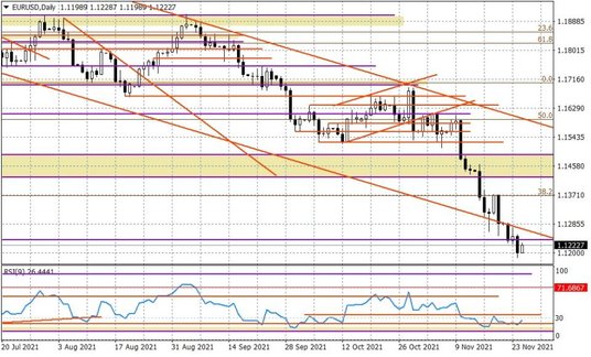 Obawy rynków, że większość europejskich krajów zdecyduje się na austriacki model walki z czwartą falą COVID (lockdown dla wszystkich i przymusowe szczepienia) mogą się nie zmaterializować - bardziej prawdopodobny jest model pośredni, czyli lockdown dla niezaszczepionych, na co zdecydowali się chociażby Włosi. To może dać preteksty do odreagowania wspólnej waluty, która została w ostatnich dniach mocno przeceniona, głównie za sprawą obaw, że restrykcje podkopią ożywienie gospodarki. Rynki zignorowały całkiem przyzwoite szacunki indeksów PMI za listopad, jakie poznaliśmy we wtorek. Innymi słowy, euro mogło nam nieco przereagować.